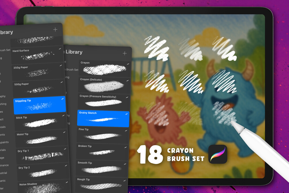 18 Crayon Procreate Brushes