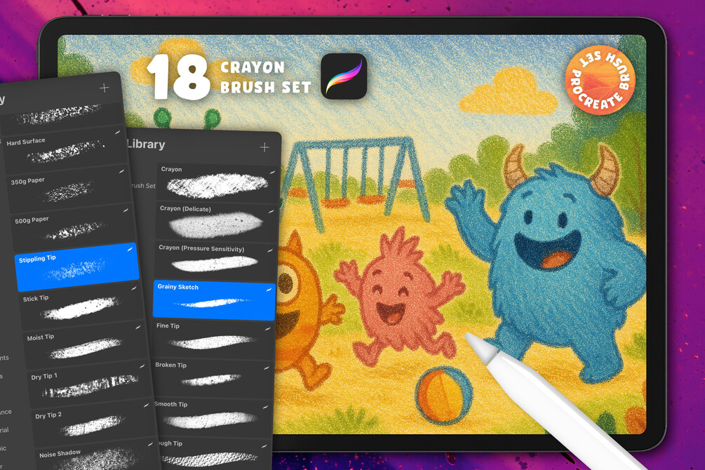 Discover the fun of our Crayon Brushes Set for Procreate! Perfect for artists at any skill level, this one-of-a-kind collection brings the delightful texture and charm of classic crayon art to your digital canvas. Effortlessly craft colorful, whimsical illustrations that burst with personality.