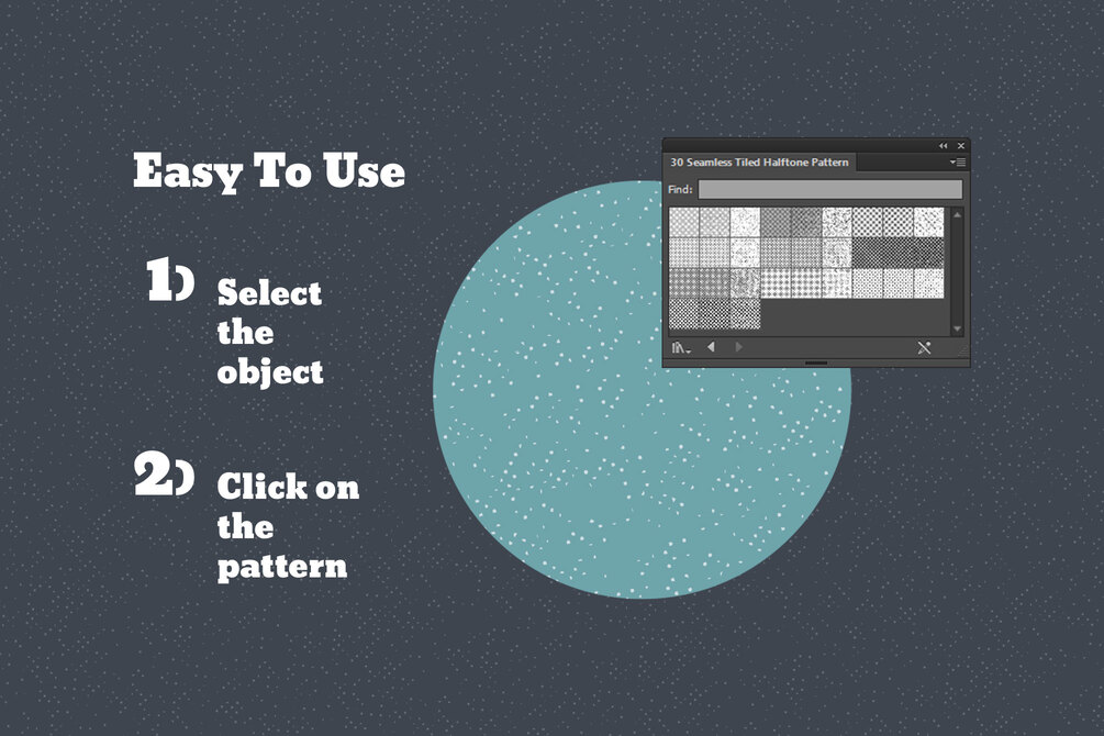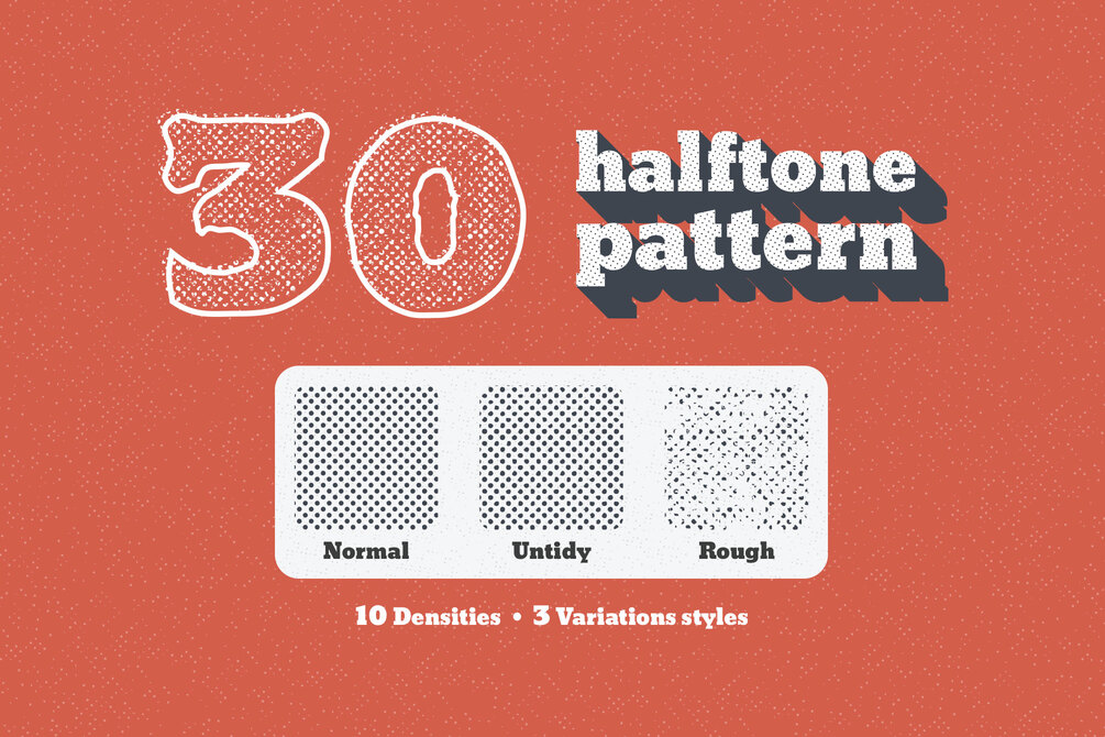 This package is a set of 30 Seamless Tiled Halftone Pattern for Adobe Illustrator that enables you to easy create a variety of halftone design. All styles are easily customizable (Scale, Rotate and Recolor) allowing you to create your own unique effects. It’ll give your graphic in awesome retro feel.