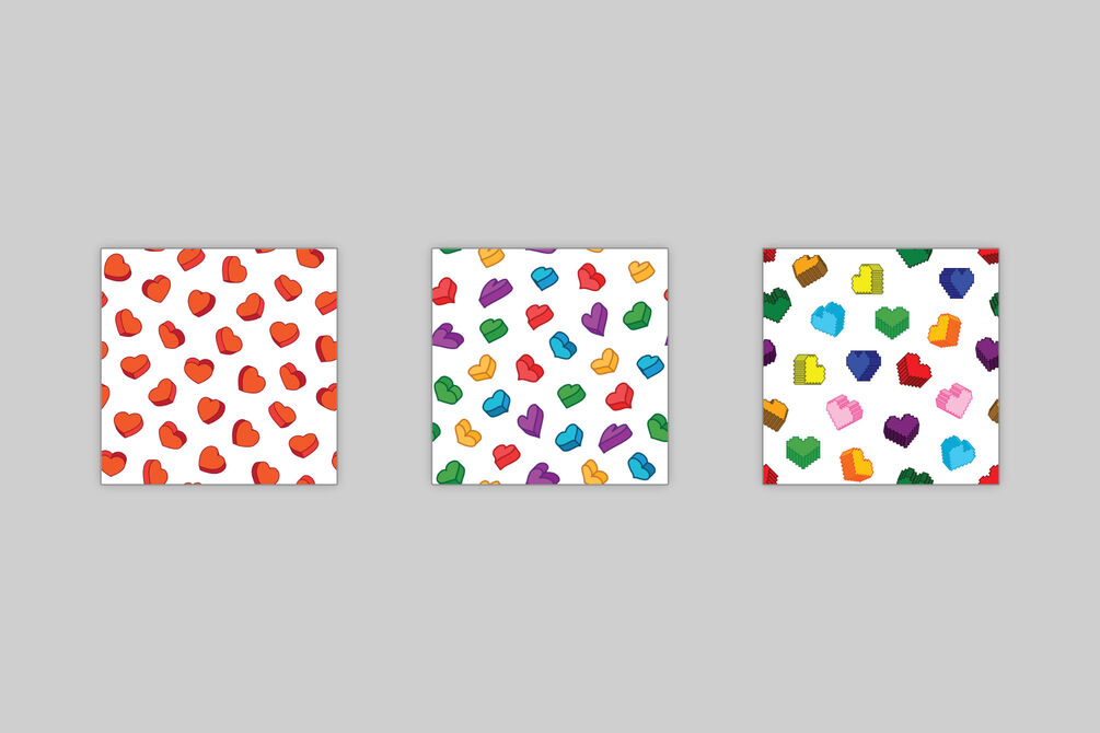 High-resolution seamless pattern for all your designing purposes. This pack includes 3 3D heart seamless patterns for photographers, graphic designers, DIY creatives to create cards, backgrounds, banners or other projects.
